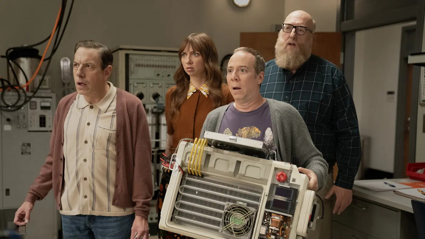 HBO has also released several images showing the main characters, including a moment where they are holding the reality machine built by Sheldon and Leonard. Other shots suggest a plot that takes them to completely different environments, including a devastated landscape with armed soldiers and a quieter moment between Stuart and Denise by a pond. These visual hints build suspense and curiosity about where the story may go.